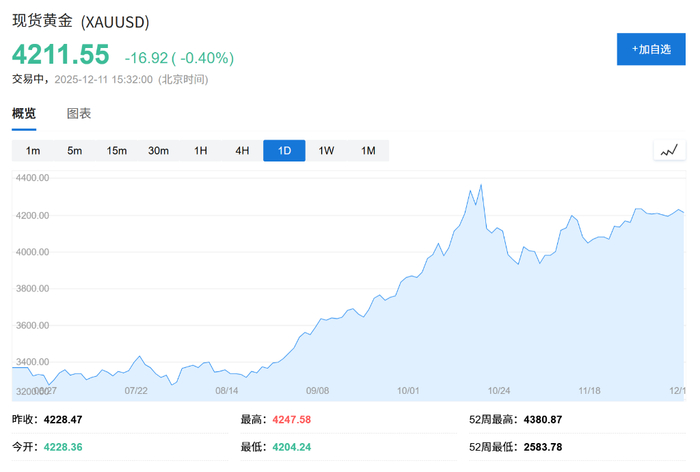 针对实物资产,美银给出了积极的预测,预计金价明年将反弹至每盎司4538美元,较当前水平有约8%的上涨空间。策略师认为,推动今年金价上涨的因素将持续存在,包括全球央行的强劲需求以及各国财政赤字的不断扩大。